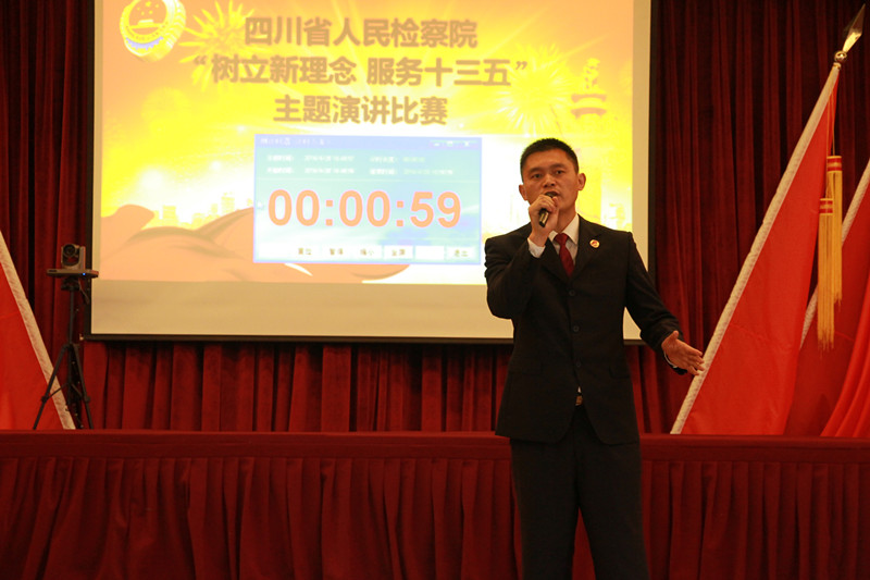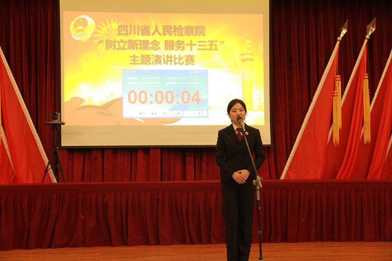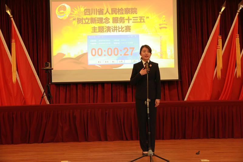 参加比赛的26名检察干警来自省院各个部门,他们以“树立新理念、服务十三五”为主题,紧密联系工作实际和切身感受,为大家带来激情澎湃、鼓舞人心的精彩演讲,展现了四川检察干警“创新、协调、绿色、开放、共享”五大思想理念和行动自觉,以及对党忠诚、勇于担当的高素质队伍形象。