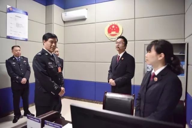 邓勇一行实地查看了检察室的办公环境,听取了驻检室检察官关于检察室设立、运行基本情况的汇报,并与驻检室检察官亲切交谈。当得知检察室是全省首家驻公安机关集中办案区检察室时,邓勇对检察室的工作表示了肯定。