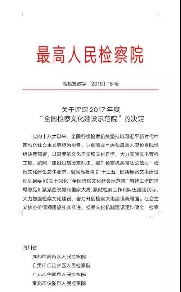 我省4个基层检察院被最高人民检察院评定为2017年度“全国检察文化建设示范院”