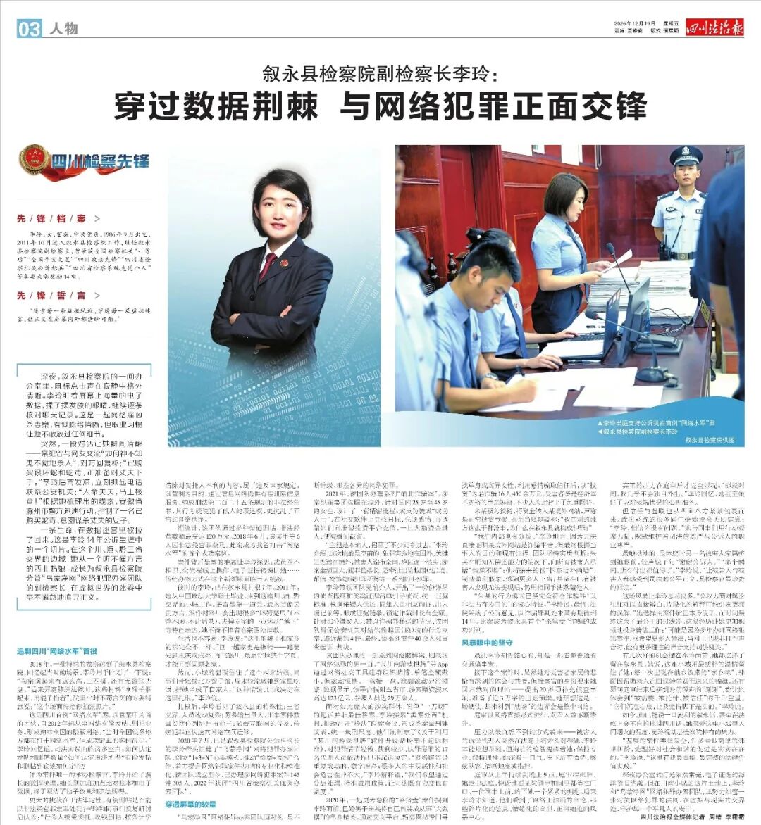 2020年7月,已是叙永县检察院公诉科科长的李玲牵头组建了“乌蒙净网”网络犯罪办案团队,创立“1+3+N”办案模式,推动“检察+高校”合作,着力提升网络犯罪案件办理的专业化和精准化。该团队成立至今,已办理涉网络犯罪案件145件305人,2022年获评“四川省检察机关优秀办案团队”。