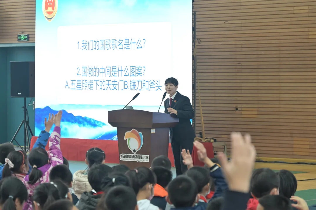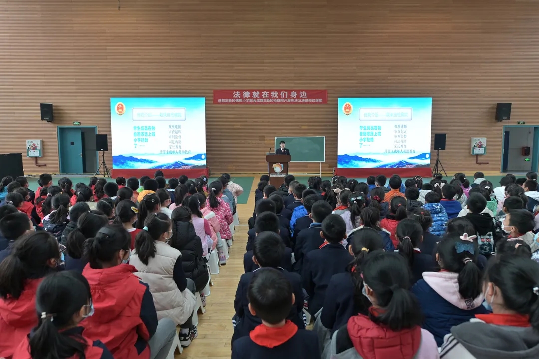 12月3日下午,为深入贯彻落实习近平法治思想,弘扬宪法精神,在第八个“国家宪法日”来临之际,四川省人民检察院、成都高新区人民检察院到成都高新区锦晖小学开展“法治进校园”活动,将宪法知识送到同学们的手中,锦晖小学四至六年级1040名师生全部参加了此次活动。
