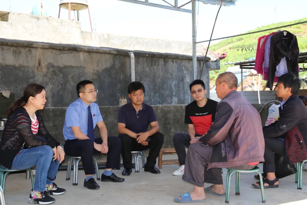 白华(左二)到案件当事人村中了解情况。
