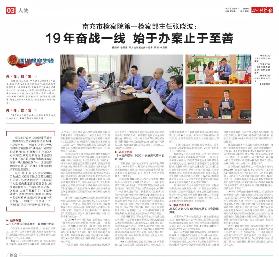 这是张晓波多年来践行高质效办案要求,推动个案办理向类案监督延伸,促进社会治理的一个缩影。19年的检察履职中,张晓波将“如我在诉”理念融入案件办理全过程,总是为群众多想一点,多做一点,以高质效、最优解办案,着力解决群众急难愁盼,推动解决社会治理难点,努力实现“办理一案、治理一片、惠及一方”。