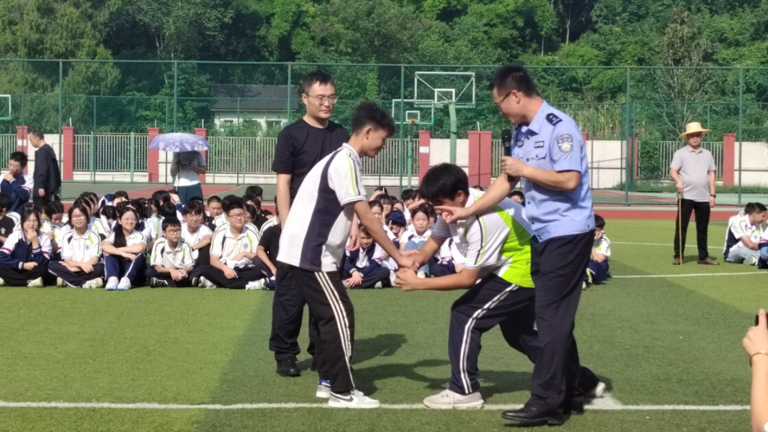 9月1日,简阳市检察院司法警察大队以开学季“法治进校园”活动为契机,为禾丰镇普安九年制义务教育学校师生带来了一场别开生面的“应对突发暴力伤害”实训演练。警队教官结合实际案例,详细讲解了在遭遇突发暴力伤害时如何有效应对。教官现场模拟“背后抓手”“抓衣领”等常见攻击方式,并讲授被击打头部等身体重要部位时的应对技巧。通过真实场景模拟,同学们更加深刻地领会了如何在紧急情况下迅速做出反应,保护自己免受伤害,自我保护意识得到提高,强化了应对处置暴力侵害的能力。