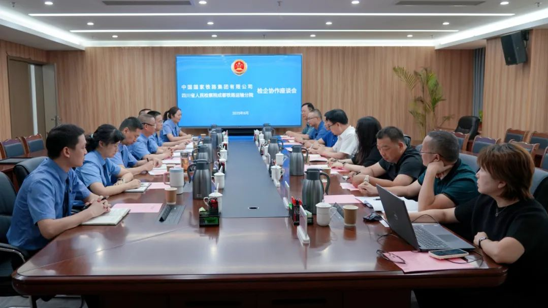 8月22日,中国国家铁路集团有限公司企法部调研组到成铁检察分院调研。调研组一行参观了成铁检察分院办公办案环境,观看了宣传短片,了解了成铁检察机关近年来加强检企协作,通过公益诉讼开展路外安全隐患治理,同时创新工作方法,以“网格化管理+全流程协作”保障铁路运营安全的成效。座谈会上,双方围绕如何继续通过涉铁公益诉讼,更好服务保障铁路运输安全和铁路事业高质量发展进行深入交流。