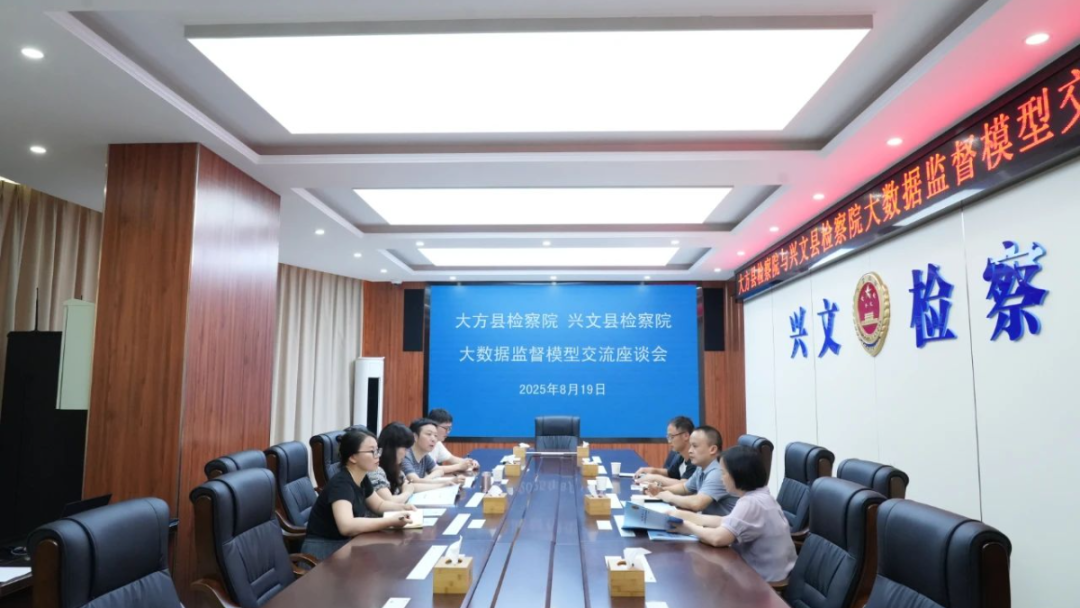 8月19日,贵州省大方县检察院派员赴兴文县检察院交流大数据法律监督模型推广应用工作,互鉴共商数字检察发展路径。两地检察院分别介绍了“财产刑全流程执行监督模型”和“人民法院刑事裁判执行文书送达违法监督模型”的研发背景、运行机制及推广应用成效。双方围绕各自模型的使用情况进行深入交流,聚焦模型优化升级和应用前景开展专题探讨。结合各自实践案例,分析模型运行中数据调取、清洗存在的问题,互相提出意见和建议,达到了业务互学、经验互享、难点互研的良好效果。同时,双方还就巡回检察、派驻监管场所检察、检察侦查等工作进行了交流,分享工作经验做法,共同破解工作难题。
