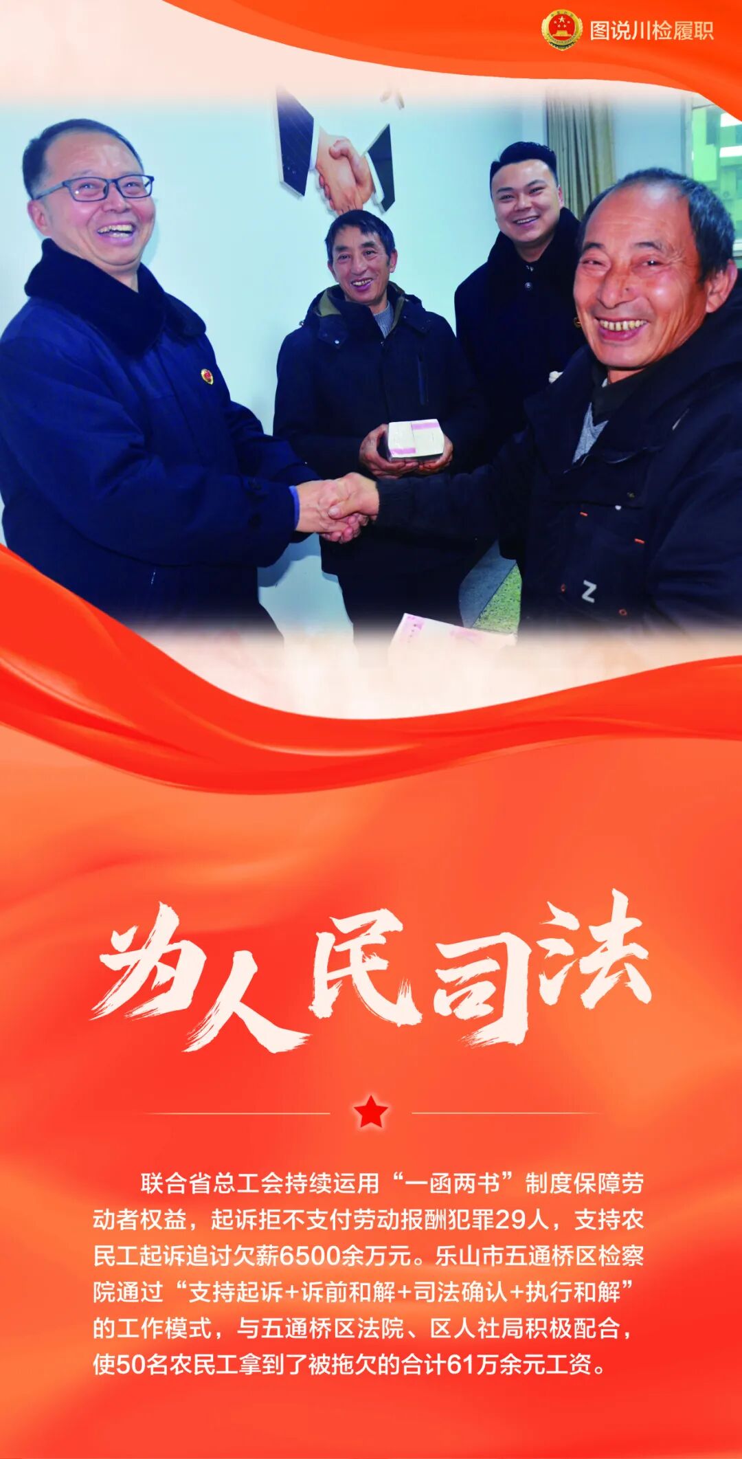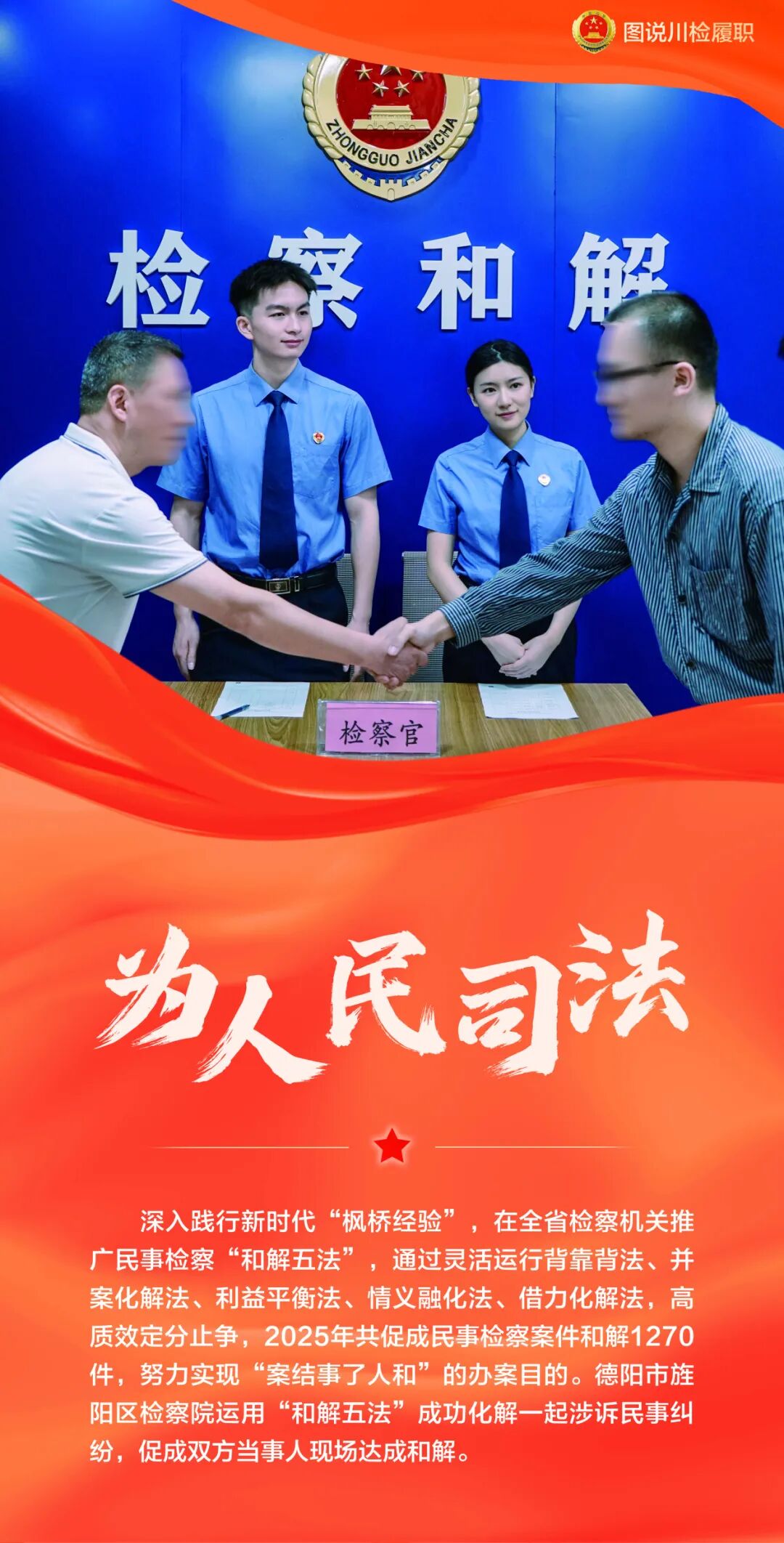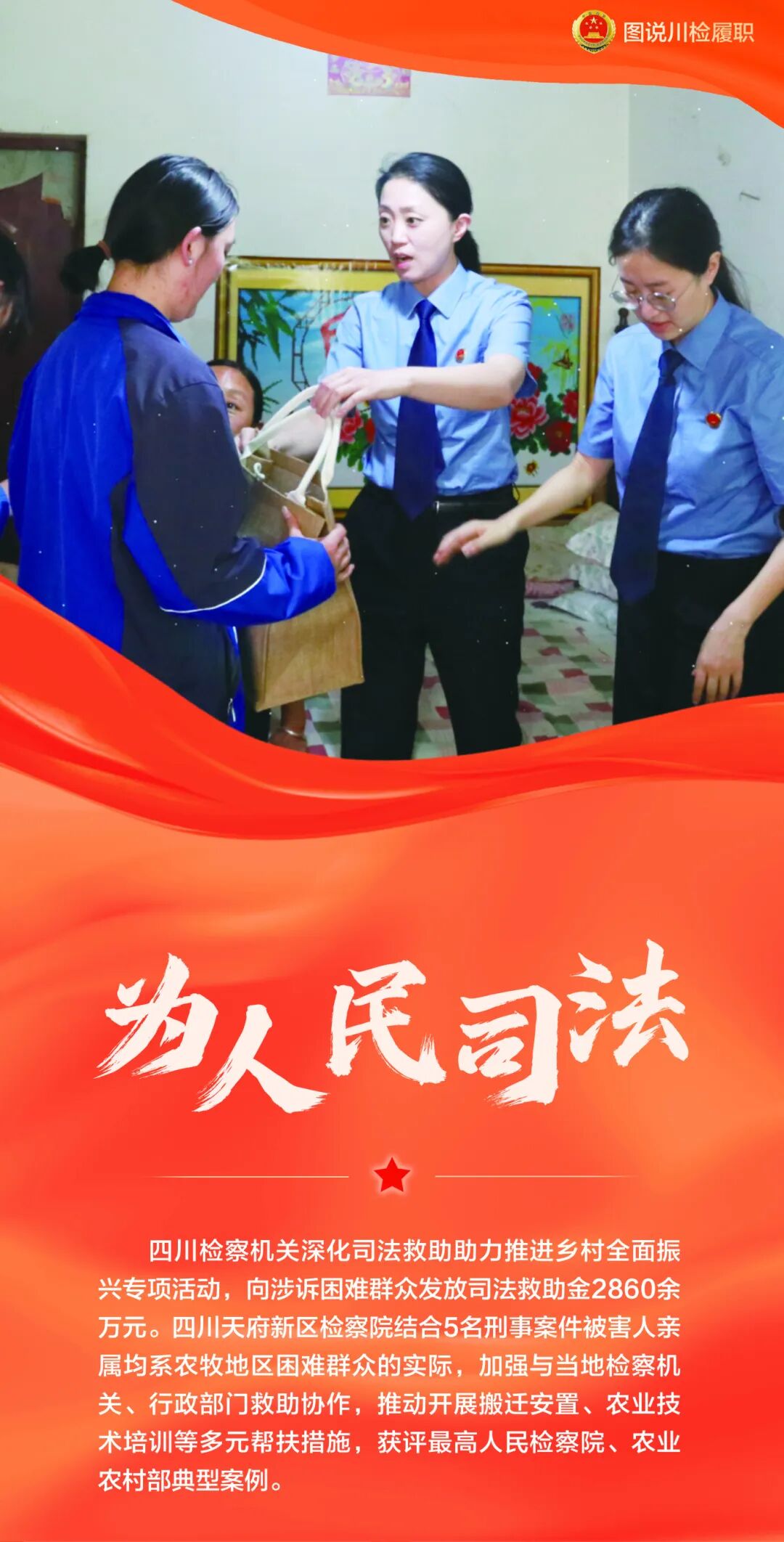 从打造 “天府星火” 未检品牌,护航未成年人成长,到创新民事检察 “和解五法”,巧解基层矛盾纠纷;从持续抓实支持起诉工作,助力特殊群体依法维权,到强化司法救助力度,为涉诉困难群众雪中送炭;从开展送法进军营,筑牢军人军属法治防线,到重拳打击农资领域犯罪,守护农民兄弟切身利益;从督促完善无障碍设施,保障出行“有爱无碍”,到强化古村落司法守护,传承巴蜀千年文脉……四川检察机关以检察担当传递司法温度,以忠诚履职守护民生福祉,努力让人民群众在每一个司法案件中感受到公平正义。