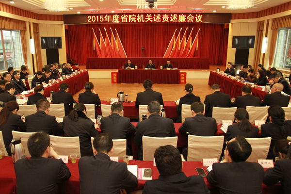 会上,省院办公室、政治部综合处、干部处等共10个部门主要负责人,就2015年度党风廉政建设、执行政治纪律、执行廉洁从政有关规定等情况进行了述责述廉,参会人员对书面述责述廉对象和会议述责述廉对象履行党风廉政建设职责和廉洁自律等情况进行了民主测评。