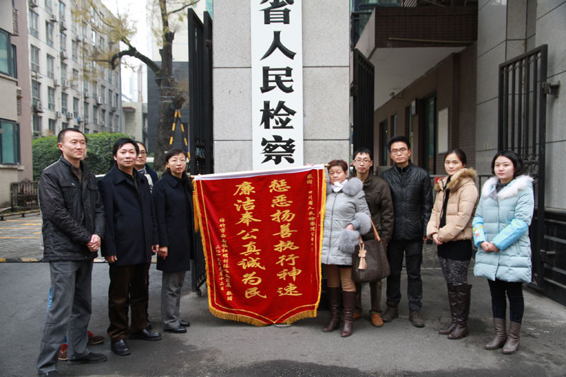 日,被害人家属十余人专程从四川绵竹赶来,将一面写有“惩恶扬善执行神速,廉洁奉公真诚为民”的锦旗送到省检察院,对检察机关尽心履职、公正办案表示真诚感谢。