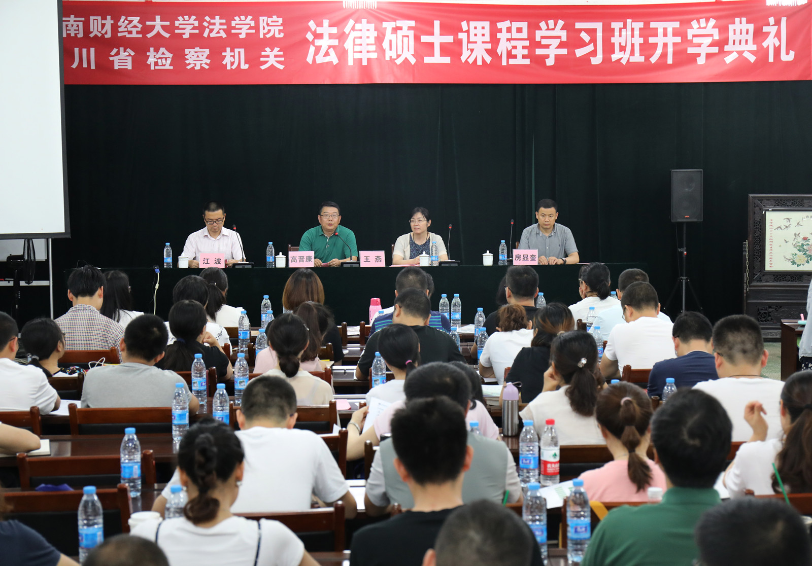 近日,四川省检察机关法律硕士课程学习班在西南财经大学法学院正式开班。四川省人民检察院政治部副主任王燕、四川省人民检察院政治部教育培训处副处长房显奎、法学院院长高晋康教授出席了开班仪式。开班仪式由法学院院长助理江波博士主持。
