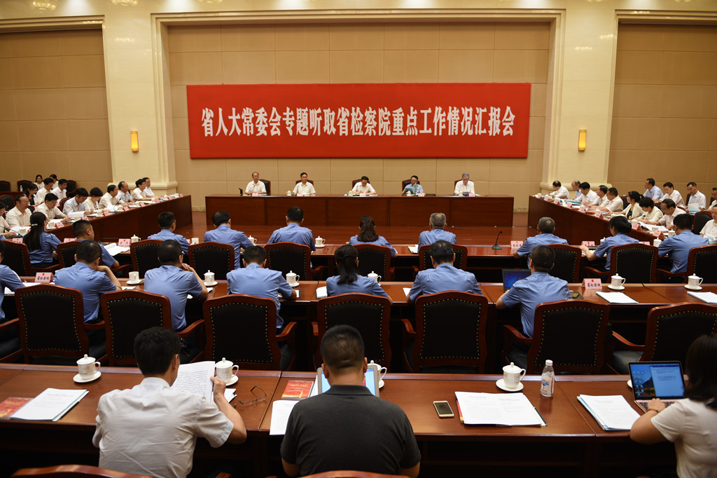汇报会上,四川省人民检察院检察长冯键代表省检察院汇报了2018年上半年全省检察机关4项重点工作情况,展示了检察机关在依法行使法律监督职能、深入推进司法改革、维护国家安全和社会和谐等方面取得的成绩,分析了存在的问题和困难,提出了解决问题的思路、措施和下一步工作打算。