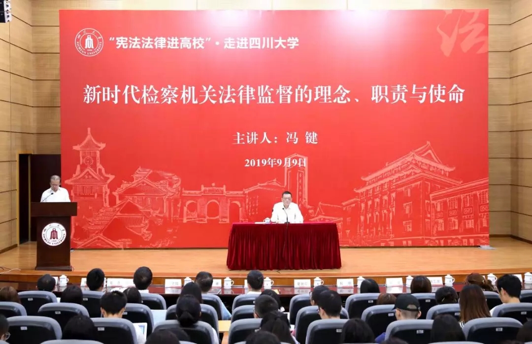 近日,省检察院党组书记、检察长、大检察官冯键走进四川大学,围绕“新时代检察机关法律监督的理念、职责与使命”这个主题,送上“开学第一课”。此次活动是我省“宪法法律进高校”系列活动之一。