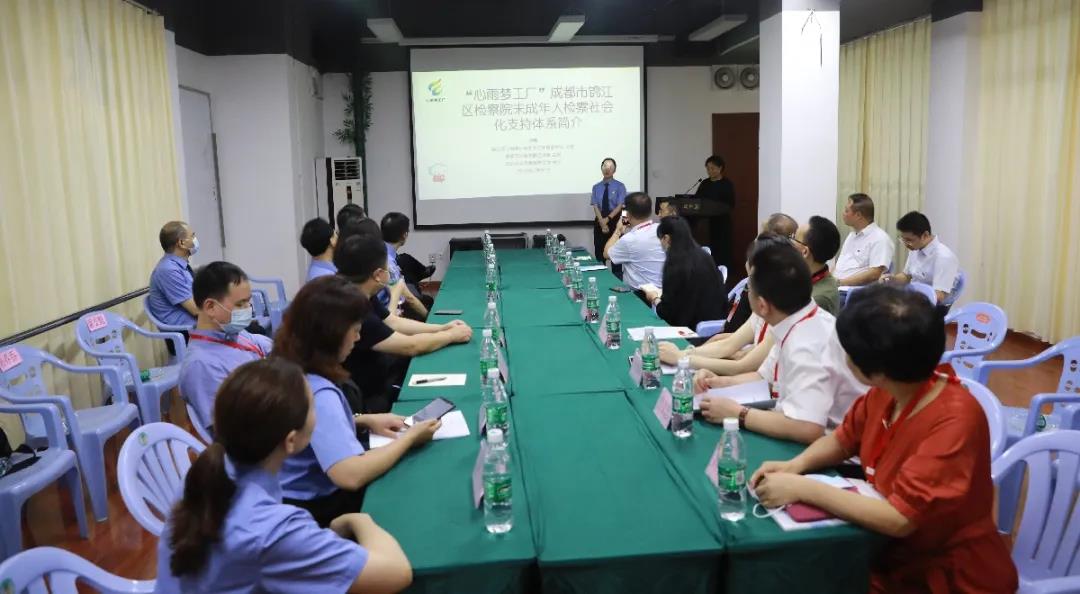 成都市锦江区检察院向代表委员介绍 “心雨梦工厂”社区工作模式。