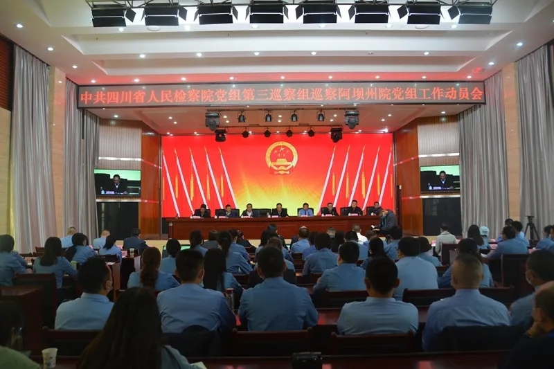 8月26日,中共四川省人民检察院党组第三巡察组巡察阿坝州人民检察院党组工作动员会在马尔康市召开。四川省人民检察院党组第三巡察组组长王明俊作巡察动员讲话,州委政法委政治部主任周利天就配合巡察组做好政治巡察工作提出了要求,州检察院党组书记、检察长邓鹏同志主持会议并作表态发言。