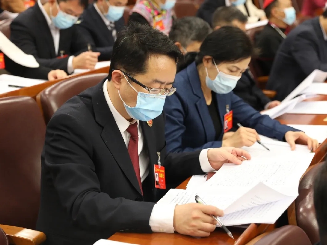 在第一次全体会议上,四川省人民检察院检察长冯键作四川省人民检察院工作报告。(图片来源:川观新闻)