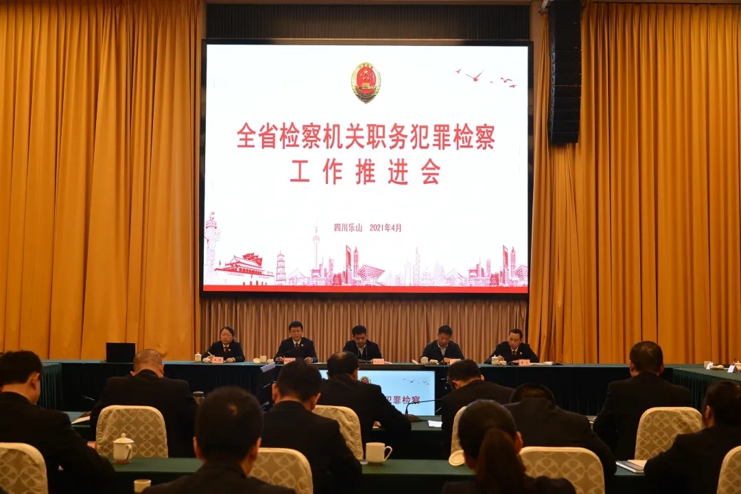 为进一步推进新形势下全省职务犯罪检察工作的高质量发展,更好地服务和保障反腐败工作大局,2021年4月9日,四川省检察院在乐山召开全省职务犯罪检察工作推进会。省检察院党组副书记、常务副检察长张燕飞、省检察院检委会专职委员刘晓勇出席会议,省检察院第三检察部负责人、办案组长,各市、分、州检察院分管副检察长、职务犯罪检察部门主要负责人,雅安天全县检察院、甘孜炉霍县检察院检察长、分管副检察长参加了会议。