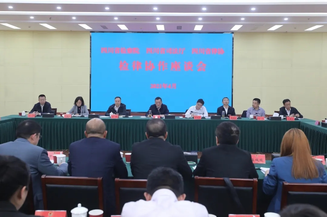 为深入学习贯彻习近平法治思想,推动检律协作和法律职业共同体建设,4月22日下午,四川省人民检察院、四川省司法厅、四川省律师协会在省检察院召开检律协作座谈会。省检察院党组书记、检察长冯键,省司法厅党委书记、厅长刘志诚出席会议。全国律师协会副会长刘守民、省律师协会会长程守太及律师代表,省检察院、省司法厅领导和相关业务处室负责人参加了座谈。
