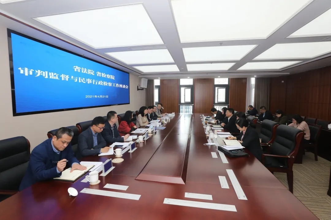 2021年4月21日,在省检察院召开的省法院与省检察院民事行政审判监督与民事行政检察工作座谈会上,省法院副院长史红平,省检察院党组成员、副检察长朱先琼,省检察院检察委员会专职委员王疆立,及省法院审判监督一庭、审判监督二庭负责人、省检察院第六检察部和第七检察部负责人围绕上述问题进行了全面、深入的商讨。