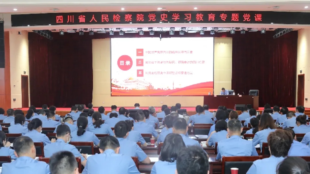 冯键带领党员干警回顾了党治蜀兴川光辉历程和沧桑巨变,讲授了吴玉章、陈毅、刘伯坚、旷继勋等革命先辈的奋斗故事,指出学习党史就要学习这些革命先辈的崇高理想信念、革命斗争精神和顽强拼搏气概,从中汲取前行力量。他还回顾了党领导下四川检察工作的发展历程,特别是结合自身工作经历讲授了川陕苏区的检察制度和检察工作,引导大家通过了解“身边的”检察史,更加深刻地认识人民检察的初心使命。