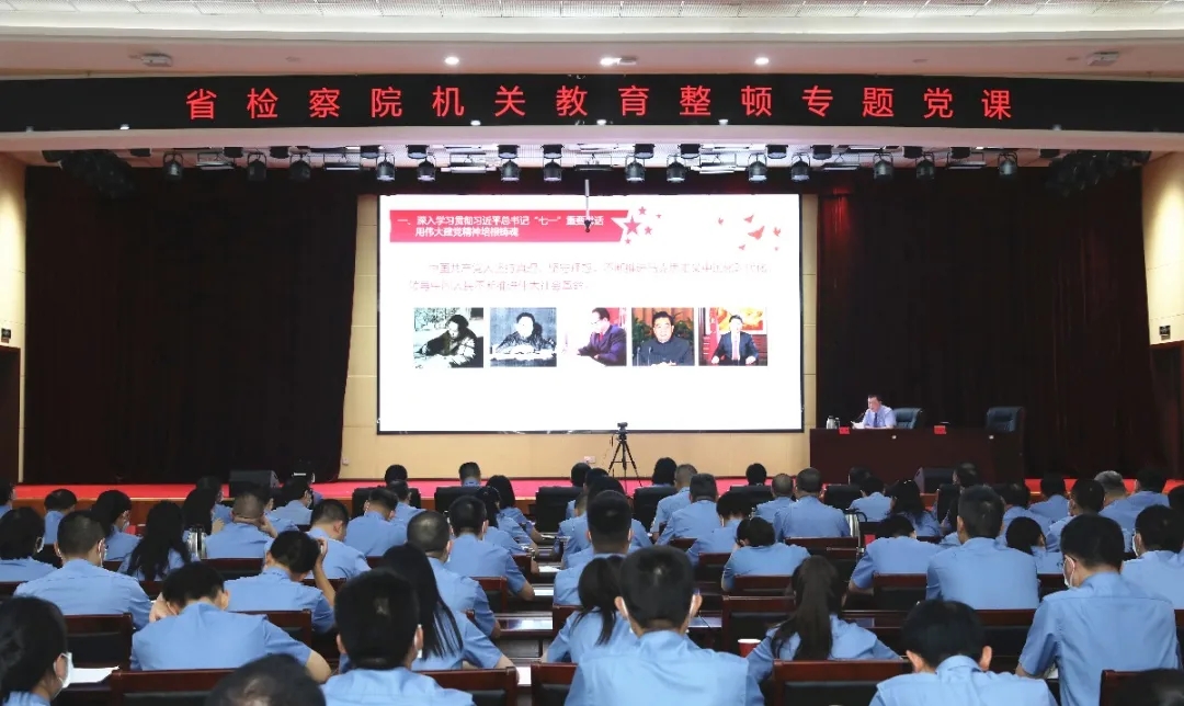 9月6日下午,省检察院党组书记、检察长冯键为省检察院机关及成铁检察两级院全体检察人员讲授专题党课,主题为深入学习贯彻习近平总书记“七一”重要讲话精神,推动检察队伍教育整顿走深走实。