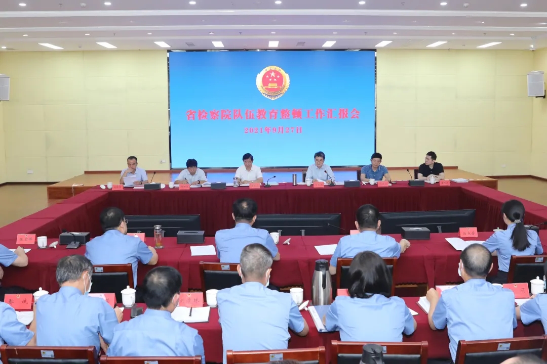 在工作汇报会上,省检察院队伍教育整顿领导小组常务副组长、党组副书记、常务副检察长张燕飞作工作汇报。省检察院队伍教育整顿领导小组组长、党组书记、检察长冯键主持汇报会并作表态发言。