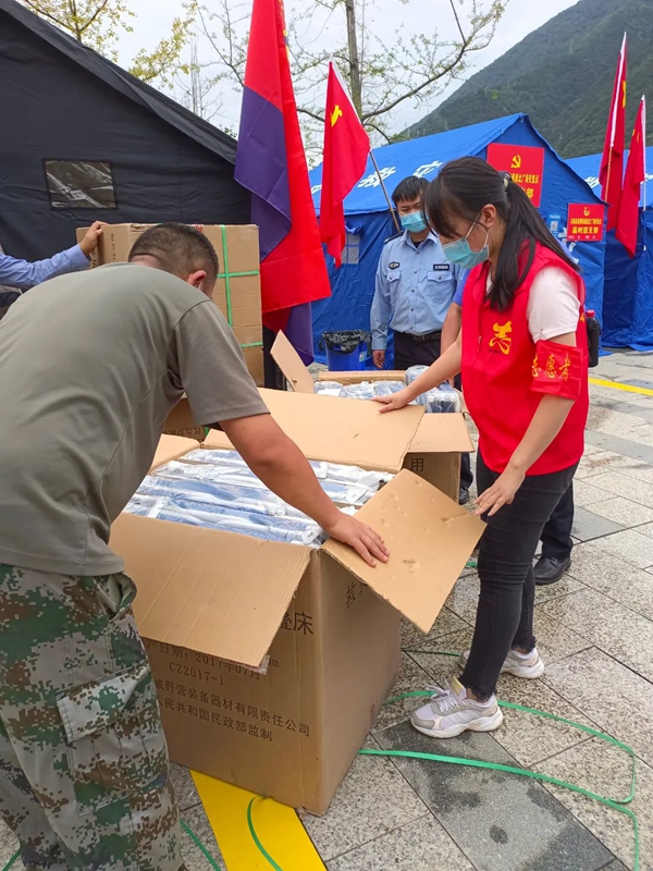 9月6日,石棉检察院应急分队队员到城北广场集中安置点帮助搬运救灾物资,维护现场秩序,安置安抚避险群众。