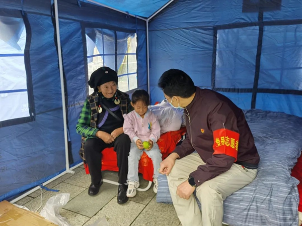 9月8日,石棉县人民检察院检察干警在集中安置点询问避险群众需求,做好群众工作,尤其是做好未成年人心理疏导和抚慰。