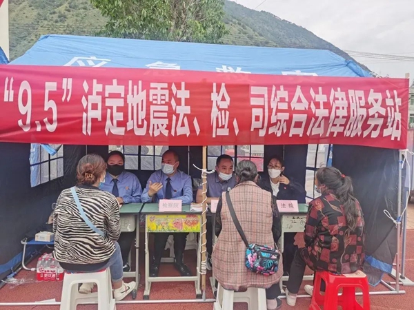 甘孜州、雅安市、泸定县、石棉县等检察院迅速成立抗震救灾工作专班,全力配合当地党委做好灾情摸排、治安巡逻、法律服务、灾后安置、防止次生灾害以及抗疫防疫等工作。