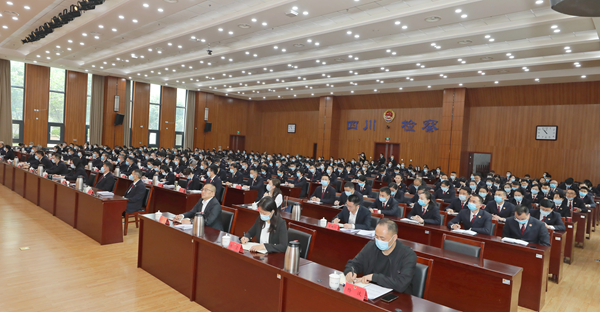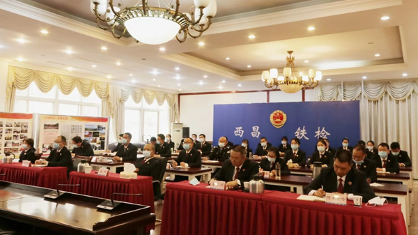 会议以电视电话会议的形式召开。省委第二巡回指导组全体成员,省检察院领导班子成员、检委会专职委员,巡视员,驻院纪检监察组、机关各内设机构、直属事业单位全体人员、离退休老干部代表在主会场参会。成铁两级三院全体人员在分会场参会。