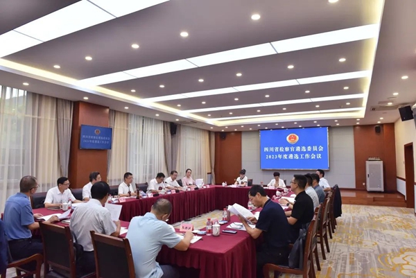 8月24日,省检察官遴选委员会在国家检察官学院四川分院召开2023年度遴选工作会议。来自省人大、省委政法委、省法院、省检察院的专门委员,以及由法学教授、知名律师、检察业务专家等组成的专家委员,共同对本年度全省初任检察官候选人进行遴选审议。
