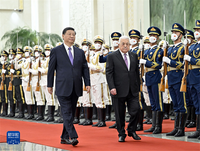 习近平指出,中巴两国是相互信任、彼此支持的好朋友、好伙伴。中国是最早承认巴勒斯坦解放组织和巴勒斯坦国的国家之一,始终坚定支持巴勒斯坦人民恢复民族合法权利的正义事业,推动巴勒斯坦问题早日得到全面、公正、持久解决。中方支持巴勒斯坦成为联合国正式会员国,将继续在多边场合为巴方仗义执言、主持公道,愿继续向巴方提供力所能及的援助,帮助巴方缓解人道主义困难、开展重建。中方愿同巴方以建立战略伙伴关系为契机,继续在彼此核心关切问题上坚定相互支持,全面推进各领域友好合作,深化共建“一带一路”合作,加快中巴自由贸易协定谈判,加强治国理政经验交流,赓续传统友好。