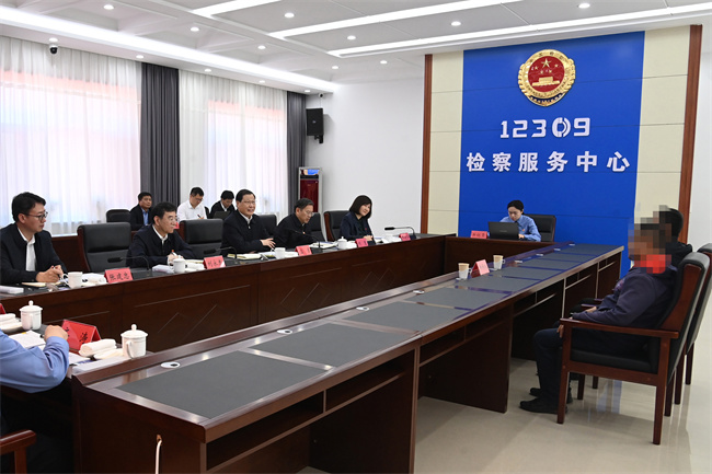 6月4日下午,最高人民检察院党组书记、检察长应勇在佳木斯市东风区检察院接访两起刑事申诉案件申诉人。